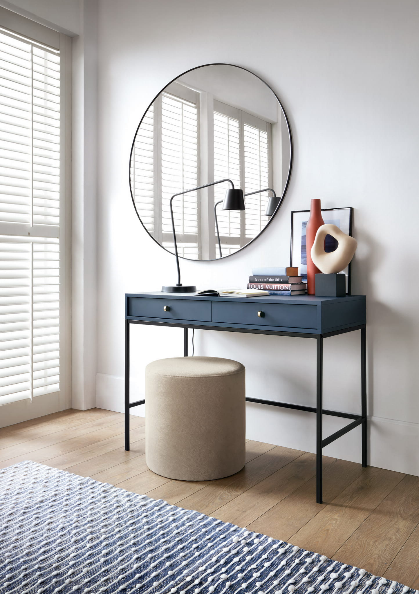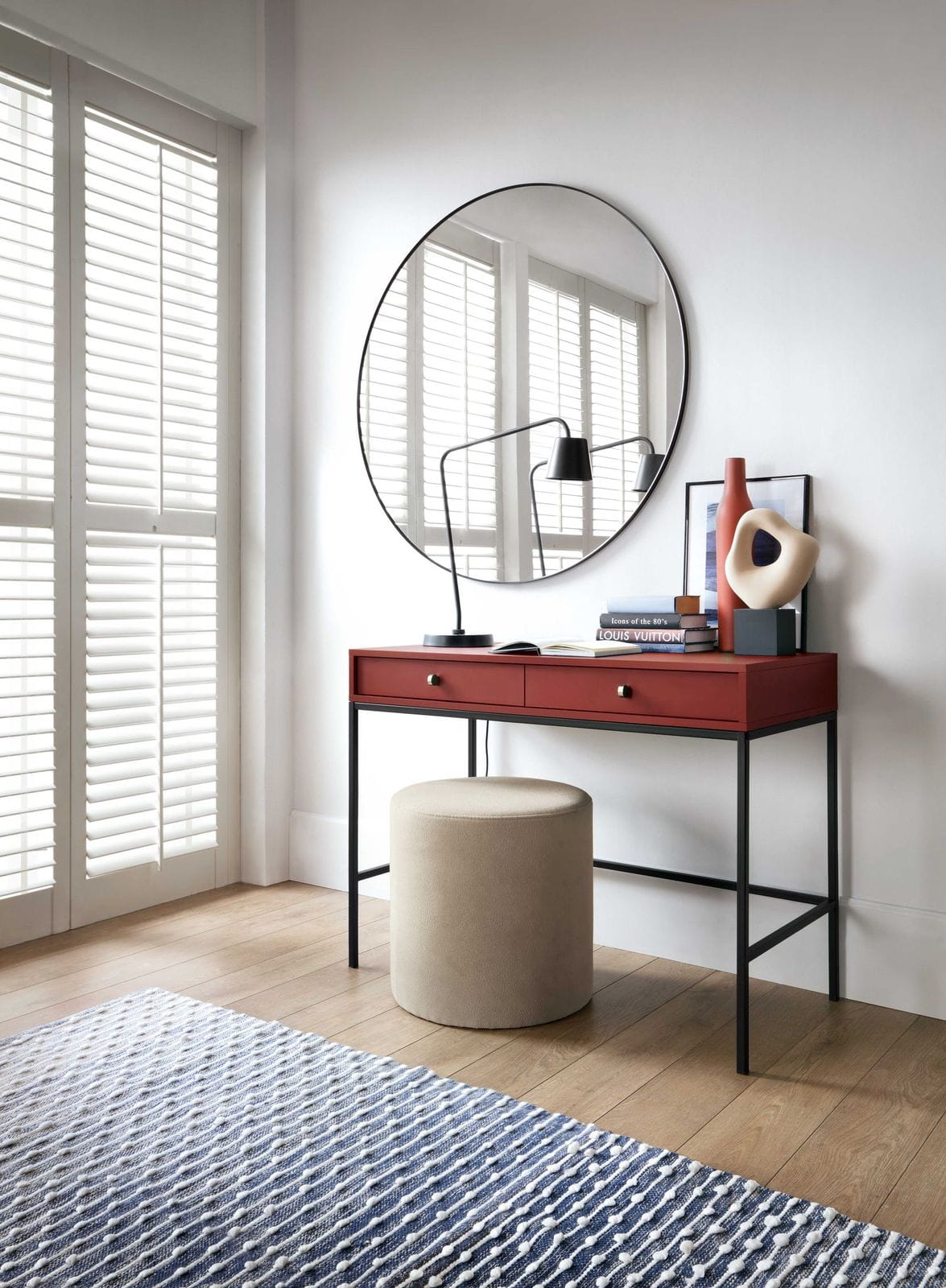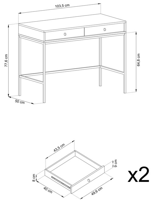 Biurko/ toaletka to bardzo funkcjonalny mebel o nowoczesnym designie. Posiada dwie szuflady, w których z powodzeniem pomieścisz wszystkie niezbędne drobiazgi. Prosta, a zarazem oryginalna forma sprawia, że śmiało wkomponuje się w wiele aranżacji nadając wnętrzu charakteru. Biurko Moon MT104 może również służyć jako toaletka.
