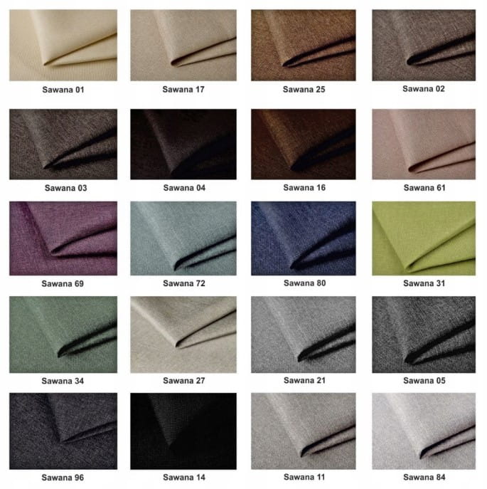 Tkanina Sawana jest bardzo mocną, odporną na ścieranie i pilling, a równocześnie przyjemną w dotyku tkaniną plecioną, w której ciekawą strukturę i niejednolity kolor tworzą dwa odcienie nitek. Jest podklejona na podkładzie poliestrowym. Dostępna jest w bardzo szerokiej gamie kolorystycznej: od kolorów ziemi i szarości, poprzez intensywne odcienie fioletu i czerwieni, aż do delikatnych pasteli. SAWANA jest uniwersalna pod kątem aranżacyjnym. Idealnie sprawdzi się jako obicie nowoczesnego fotela, klasycznej sofy czy eleganckiego krzesła.