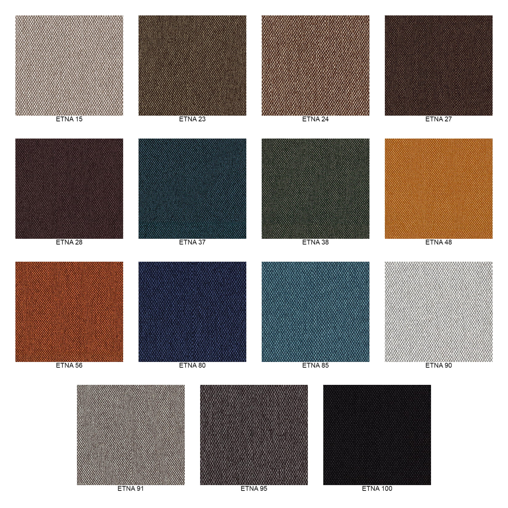 Tkanina meblowa ETNA o jednolitym, bardzo wyraźnym drobnym splocie włókien, miła i przyjemna w dotyku. Tkanina tapicerska ETNA charakteryzuje się wysoką klasą ścieralności, dużą odporność na odbarwienia, rozdarcie oraz uszkodzenia oraz niska zdolność mechacenia. Doskonała propozycja na kanapy, narożniki czy fotele przeznaczone do intensywnego użytkowania.