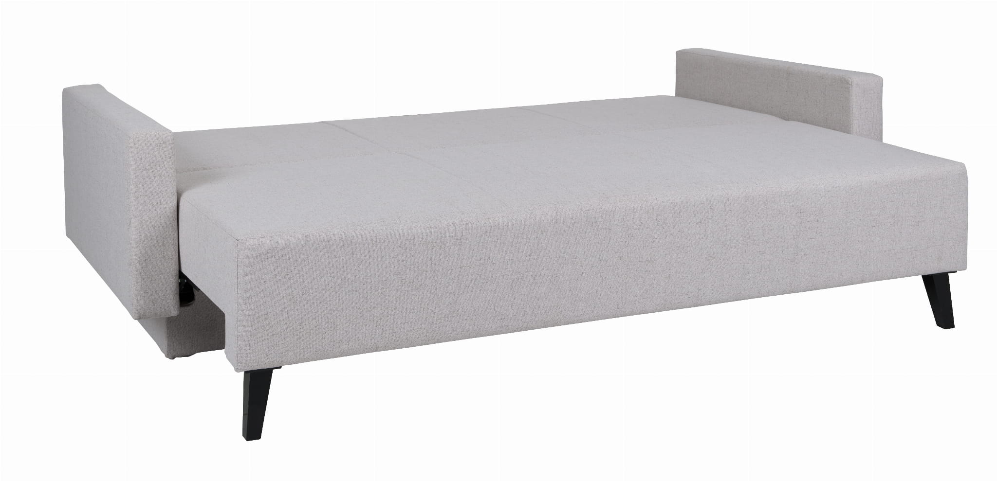 Meble tapicerowane Oviedo to bryły w stylu skandynawskim. Kanapę dopełniają nogi w czarnym połysku. Oparcie sofy składa się z ruchomych poduszek. W kanapie znajduje się pojemnik oraz funkcja spania.