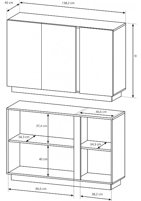 Komoda 138 Aron to stylowa komoda dedykowana wyjątkowej przestrzeni salonu lub sypialni. Wewnątrz z prawej i z lewej strony posiada po jednej półce z płyty meblowej.