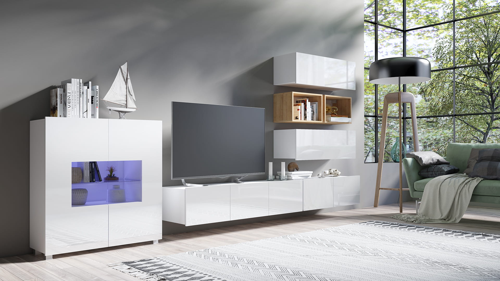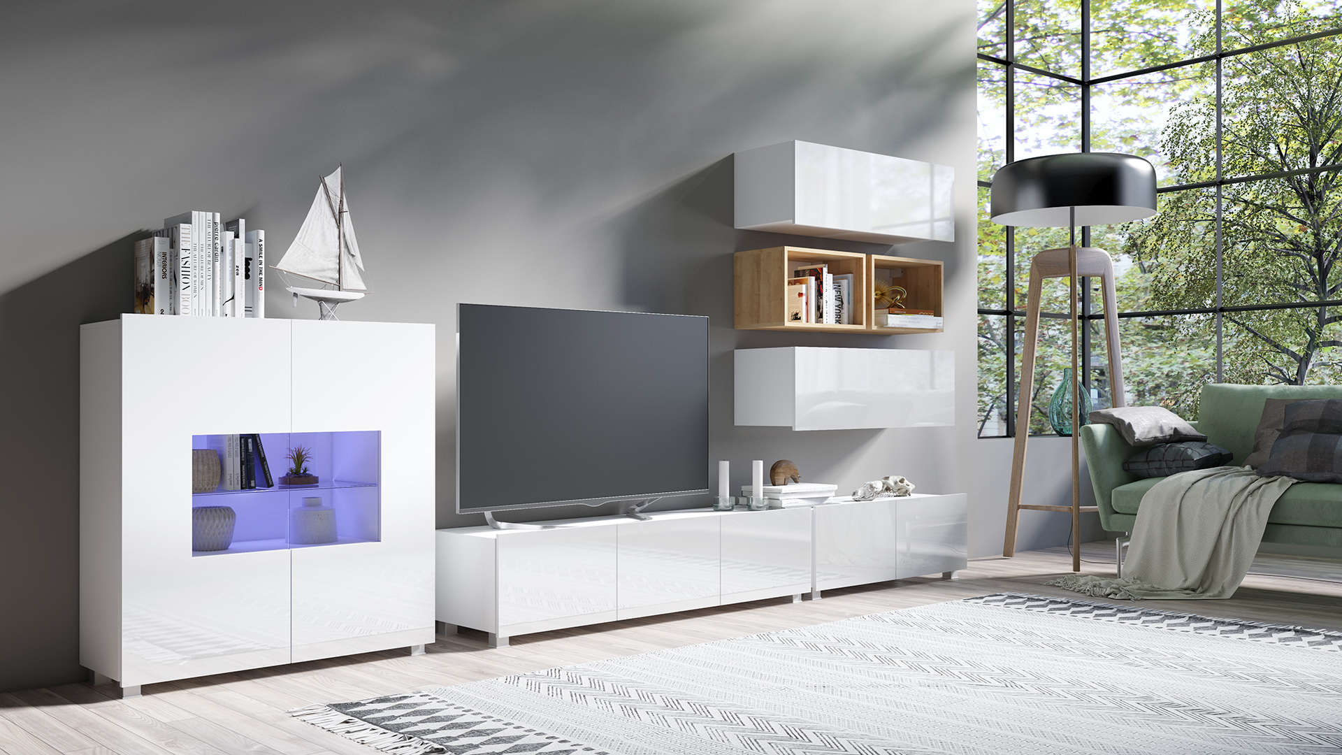 System meblowy Cindy zaprojektowany z myślą o salonie, sypialni, pokoju młodzieżowym lub gabinecie. Meble Cindy to inspirowane meble które łączą minimalizm, nowoczesność i elegancję w jednym. Mimo niewielkiej ilości elementów nasi klienci mogą tworzyć ciekawe aranżacje. Do wyboru trzy wersje kolorystyczne: biały połysk, czarny połysk i dąb złoty.