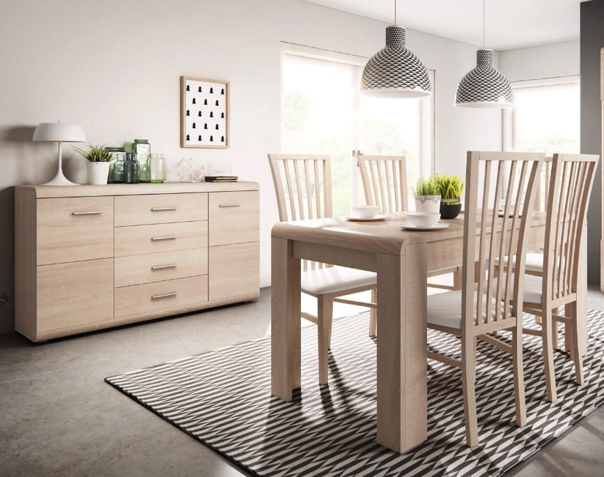 - blaty górny i dolny płyta 22 mm laminowana odporna na wilgoć i zarysowania w kolorze dąb sonoma