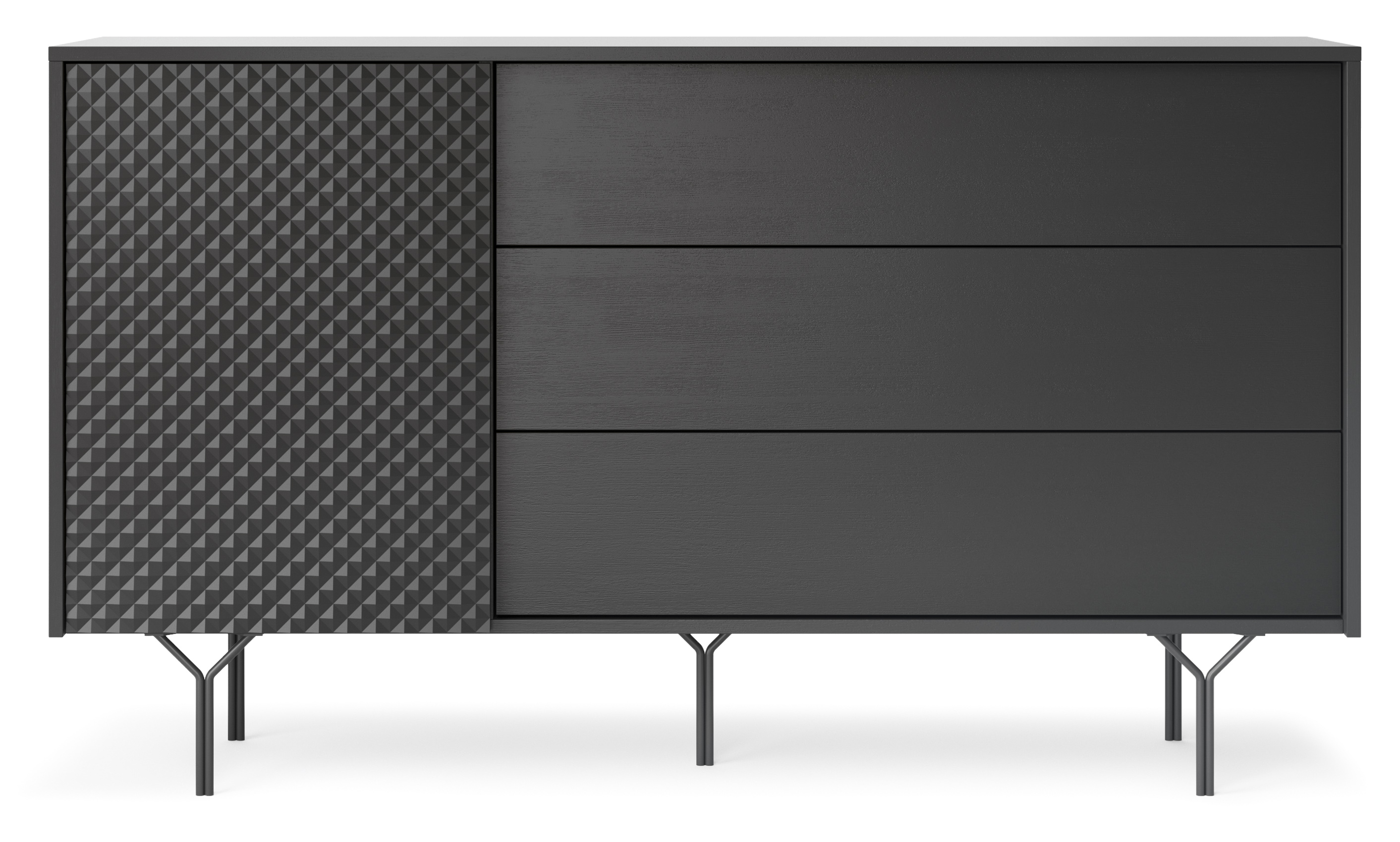 Komoda RIO z jednymi drzwiami i trzema dużymi szufladami – doskonały wybór dla tych, którzy cenią elegancję, styl i funkcjonalność.