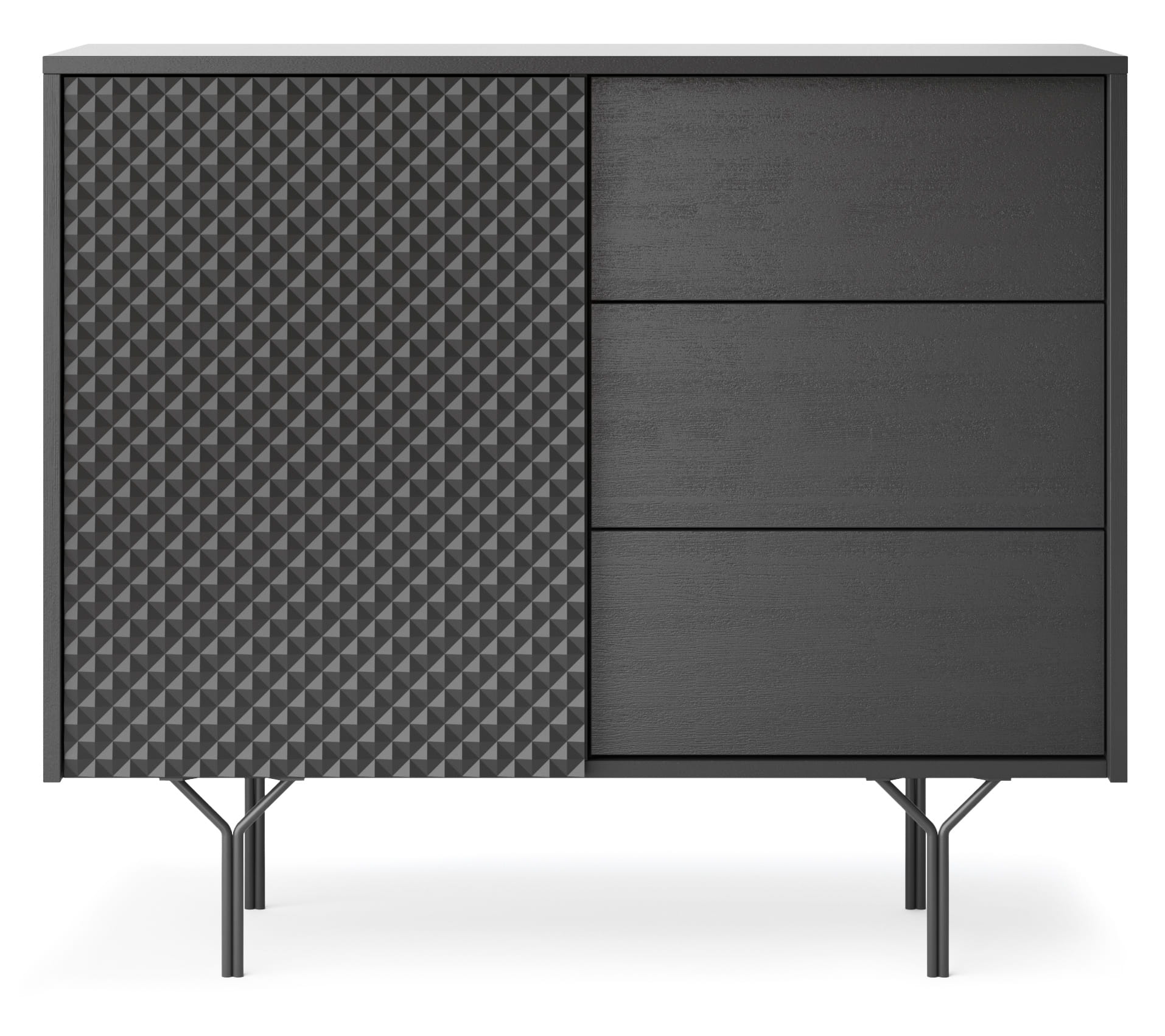 Komoda RIO z jednymi drzwiami i trzema szufladami to doskonały wybór dla tych, którzy cenią elegancję i funkcjonalność w kompaktowym rozmiarze. Mimo swojego małego rozmiaru, komoda RIO doskonale uzupełnia każdą przestrzeń, tworząc harmonijną i funkcjonalną atmosferę.