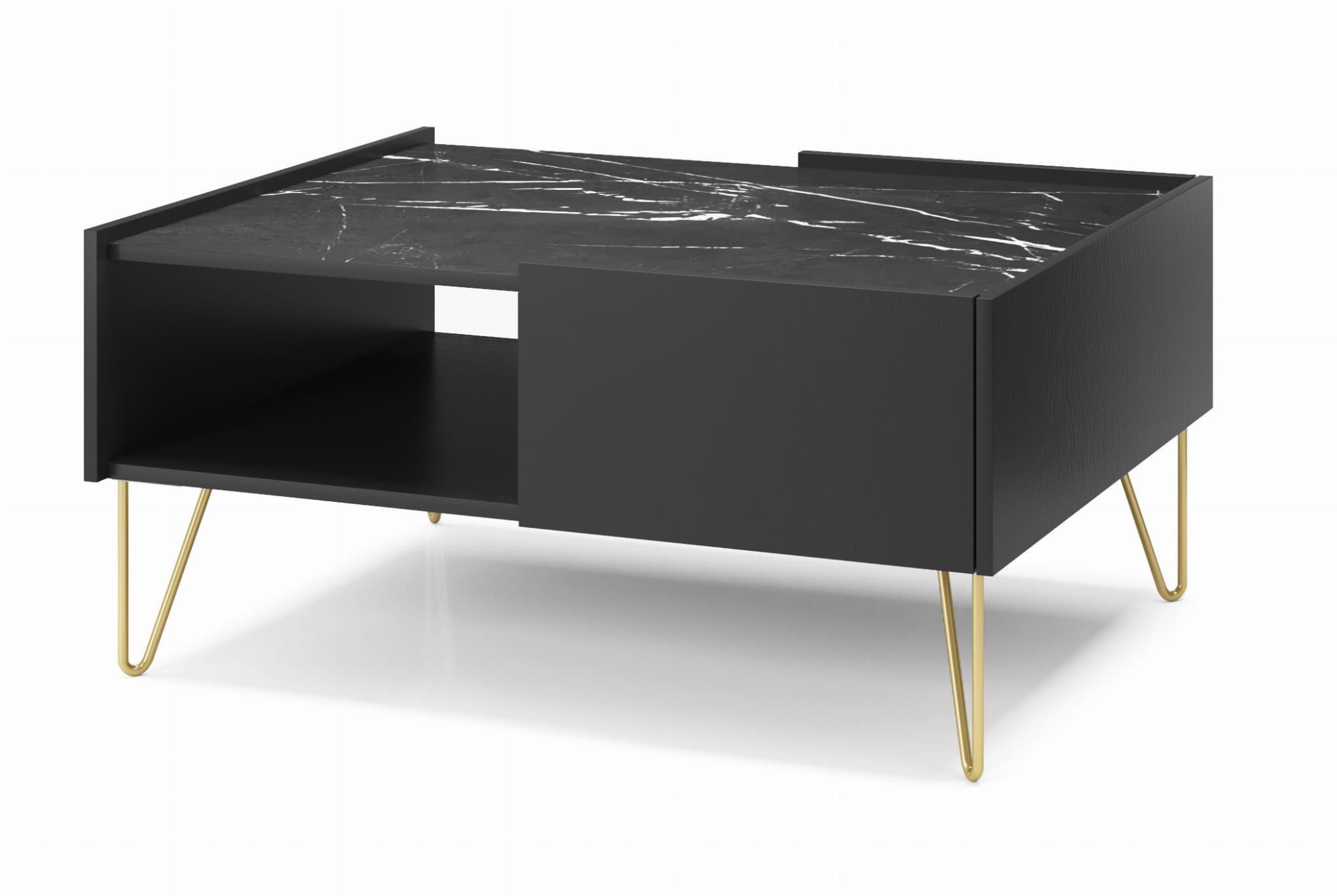 Kolekcja mebli Harriet to wyjątkowa propozycja na stworzenie efektownej aranżacji w Twoim salonie. System stanowi połączenie nowoczesnego designu i funkcjonalności. Meble z kolekcji Harriet posiadają obniżony blat, eksponujący modny dekor marmuru, który poza oczywistym walorem estetycznym, skutecznie zabezpieczy umieszczone na nim rzeczy przed upadkiem. Nietuzinkowa kolorystyka i ciekawa struktura nada Twojemu wnętrzu głębi i elegancji. Całość wieńczą wysokie złote nóżki, umożliwiające wygodne wysprzątanie przestrzeni pod meblem.