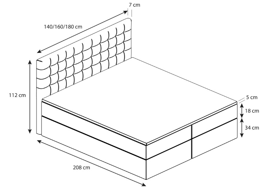 - Długość łóżka: 208 cm