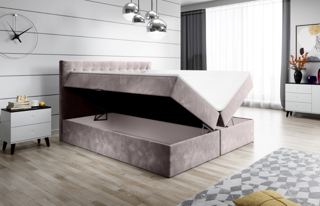 Łóżko kontynentalne BALI to połączenie elegancji, praktyczności oraz wygody. Łóżko zostało wykonane z wysokich jakościowo materiałów, co gwarantuje doskonały komfort snu. Łóżko BALI nada sypialni luksusowego charakteru. Piękny wygląd to nie jedyna zaleta naszego łóżka posiada ono również bardzo dobry jakościowo materac ze sprężynami bonell oraz system otwierania pojemników.