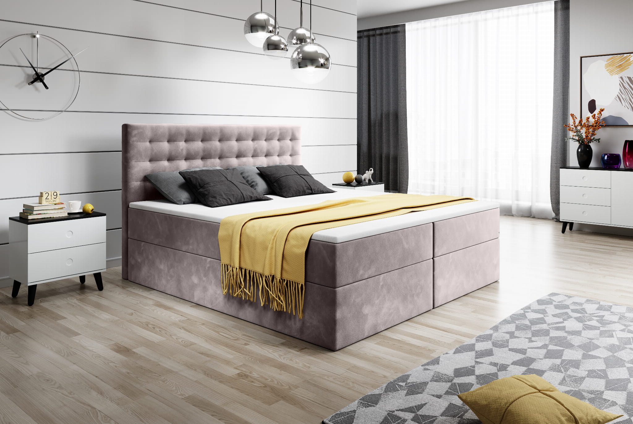 Łóżko kontynentalne BALI to połączenie elegancji, praktyczności oraz wygody. Łóżko zostało wykonane z wysokich jakościowo materiałów, co gwarantuje doskonały komfort snu. Łóżko BALI nada sypialni luksusowego charakteru. Piękny wygląd to nie jedyna zaleta naszego łóżka posiada ono również bardzo dobry jakościowo materac ze sprężynami bonell oraz system otwierania pojemników.