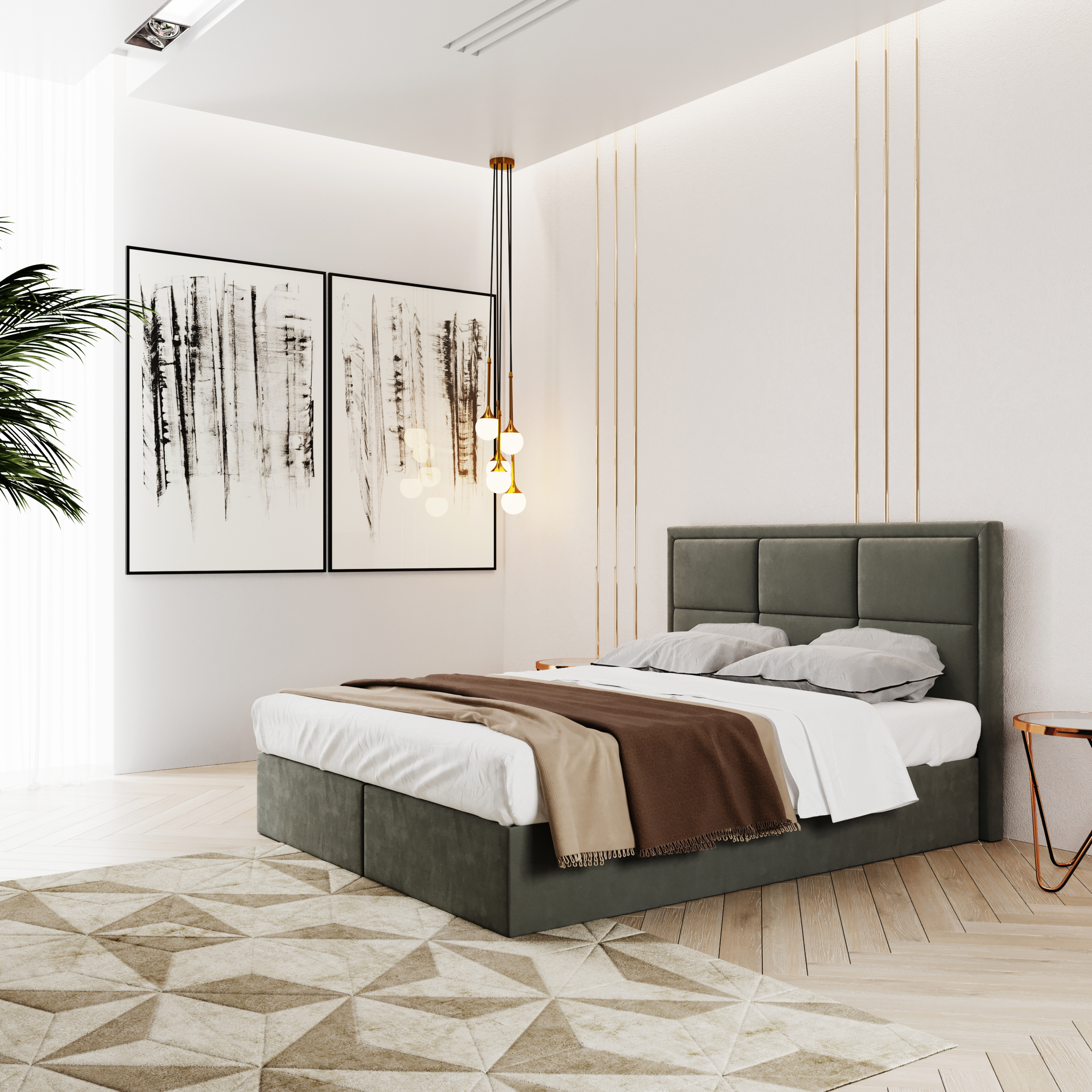 - rama łóżka wykończona jest z wysokiej jakości tkaniny tapicerskiej