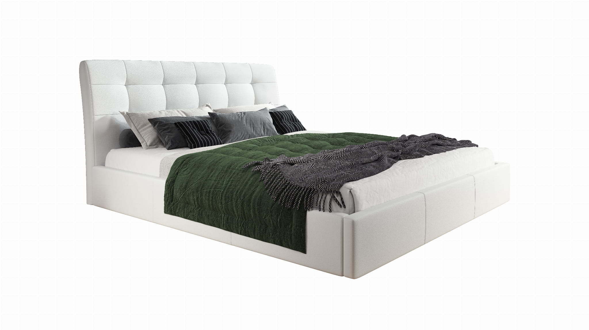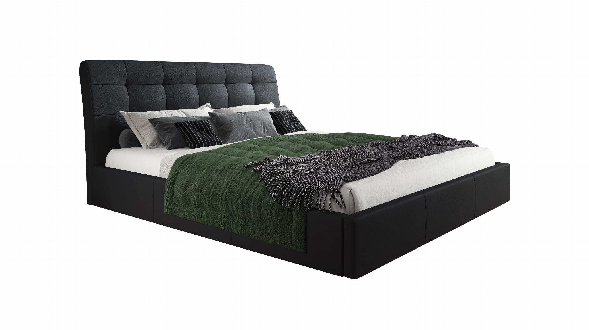 Wygodne dwuosobowe łóżko do sypialni ALAN zapewni Tobie spokojny i komfortowy sen. Posiada wysokie tapicerowane wezgłowie, które może posłużyć jako oparcie. Łóżko posiada pojemnik na pościel wraz ze stelażem elastycznym otwieranym do góry, jest to niezwykle praktyczne rozwiązanie które pozwala zaoszczędzić sporo przestrzeni.