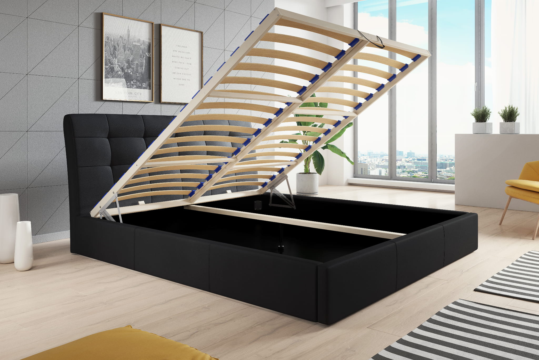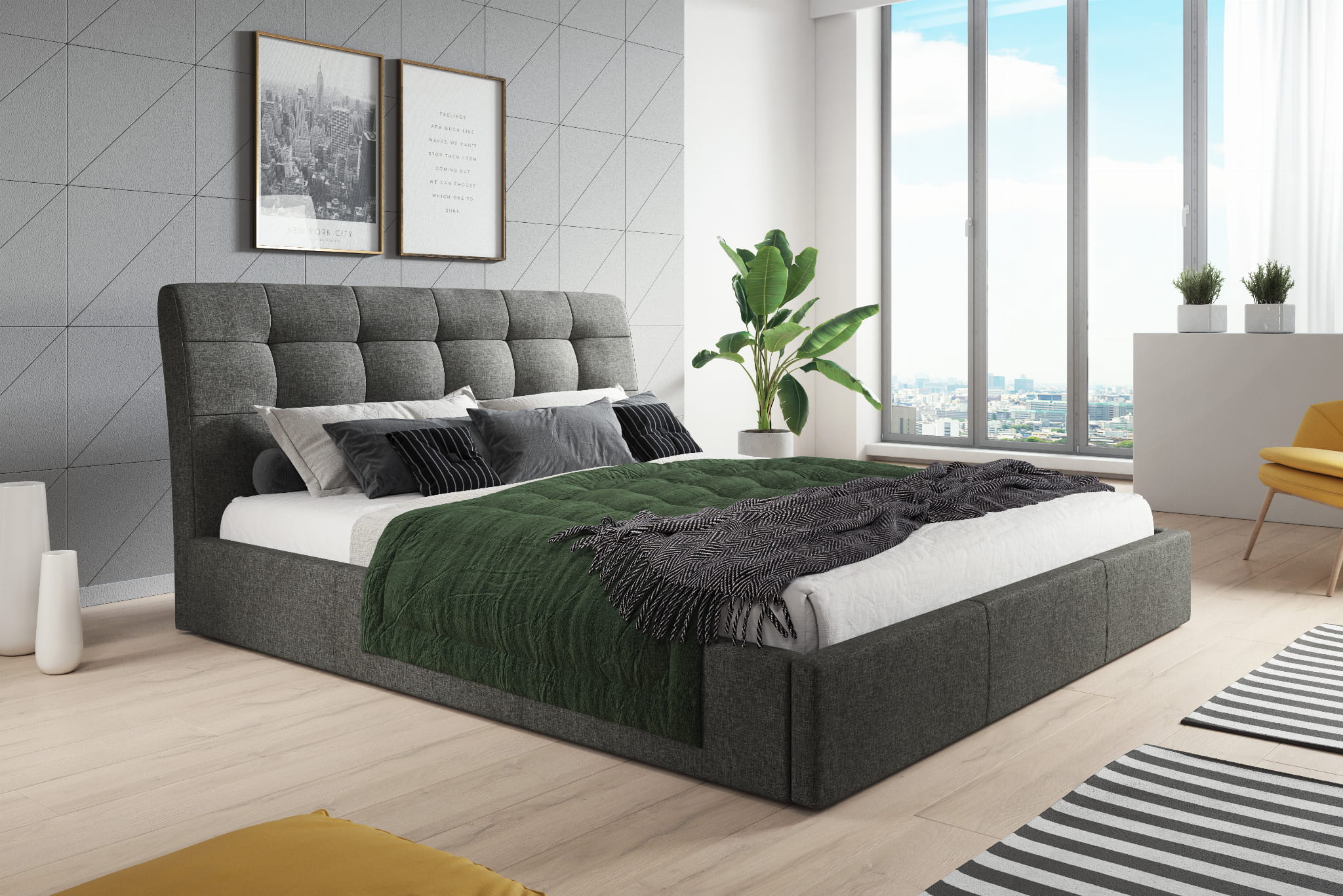 Wygodne dwuosobowe łóżko do sypialni ALAN zapewni Tobie spokojny i komfortowy sen. Posiada wysokie tapicerowane wezgłowie, które może posłużyć jako oparcie. Łóżko posiada pojemnik na pościel wraz ze stelażem elastycznym otwieranym do góry, jest to niezwykle praktyczne rozwiązanie które pozwala zaoszczędzić sporo przestrzeni.