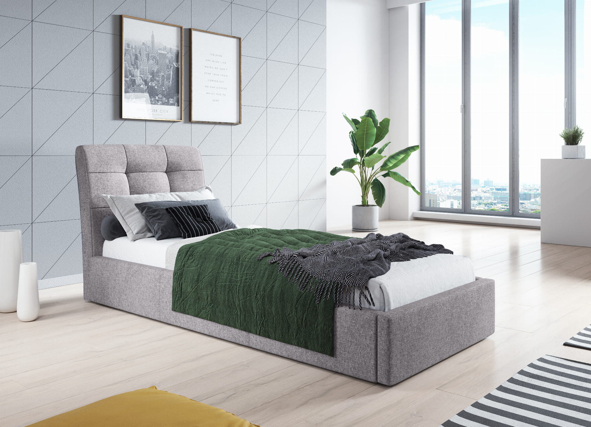 Wygodne łóżko do sypialni ALAN zapewni Tobie spokojny i komfortowy sen. Posiada wysokie tapicerowane wezgłowie, które może posłużyć jako oparcie. Łóżko posiada pojemnik na pościel wraz ze stelażem elastycznym otwieranym do góry, jest to niezwykle praktyczne rozwiązanie które pozwala zaoszczędzić sporo przestrzeni.