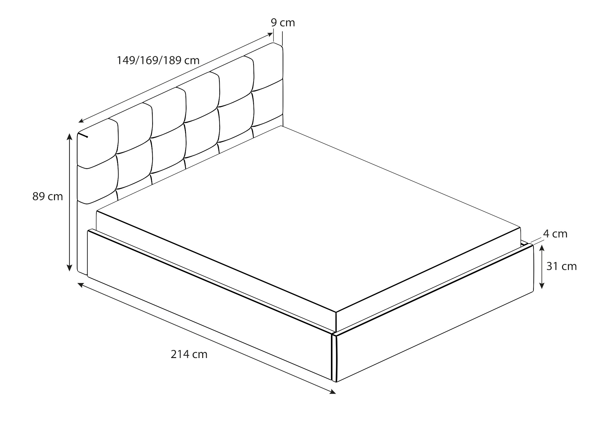 - Wysokość ramy łóżka: 31 cm