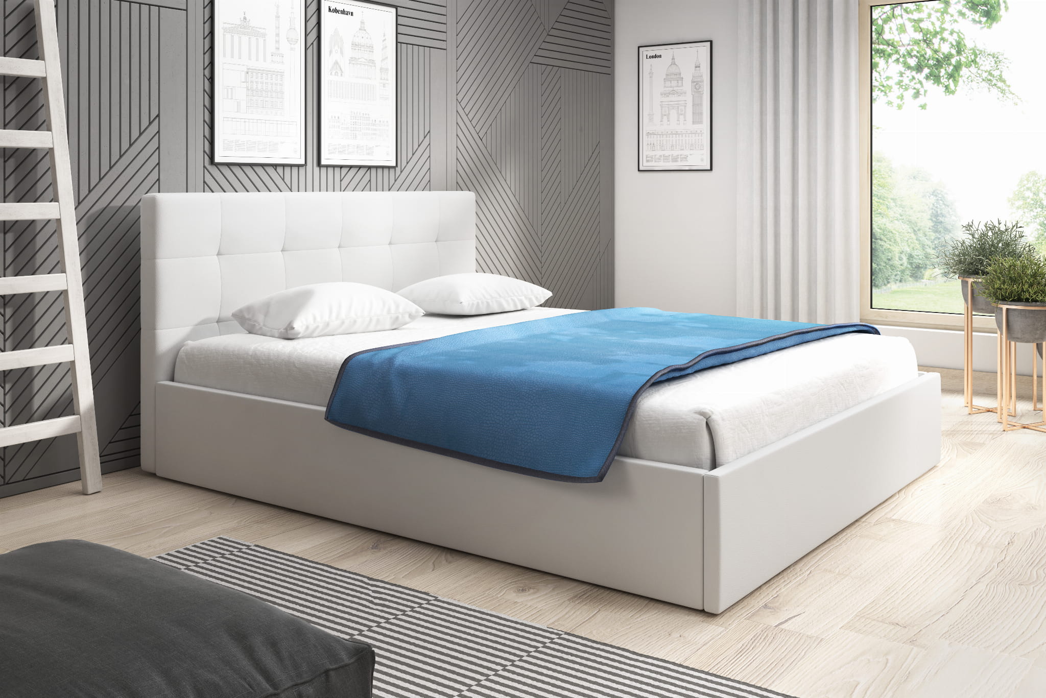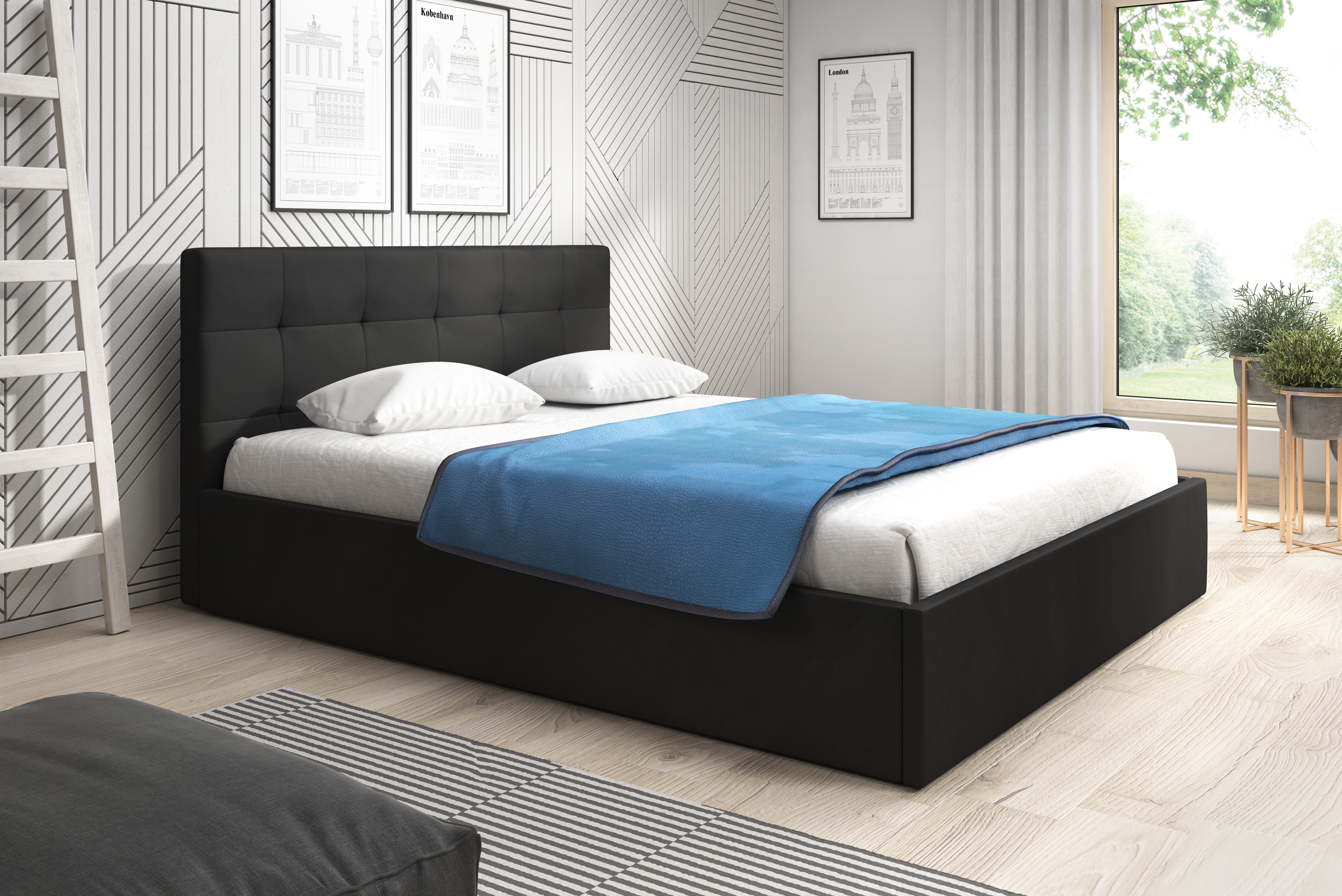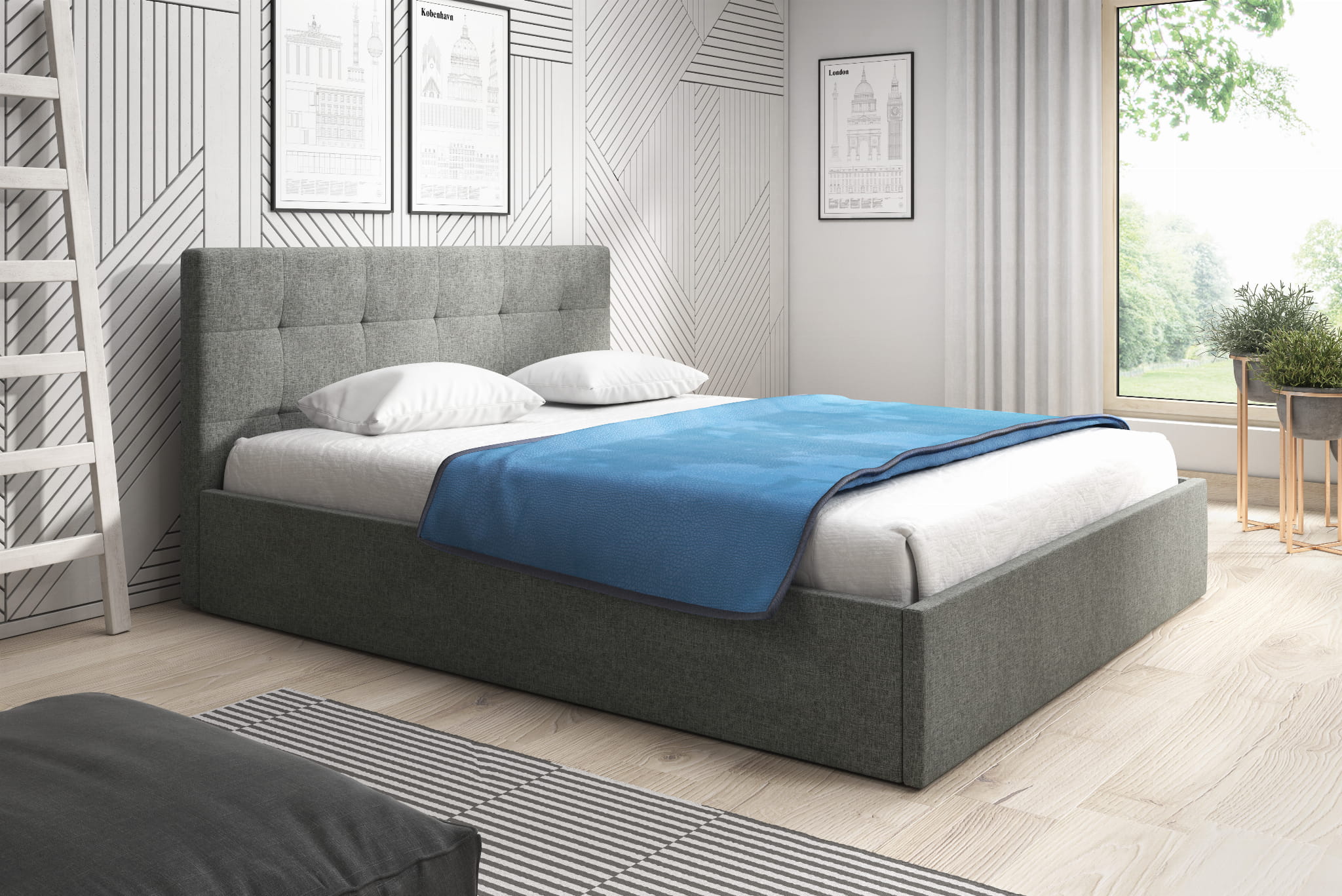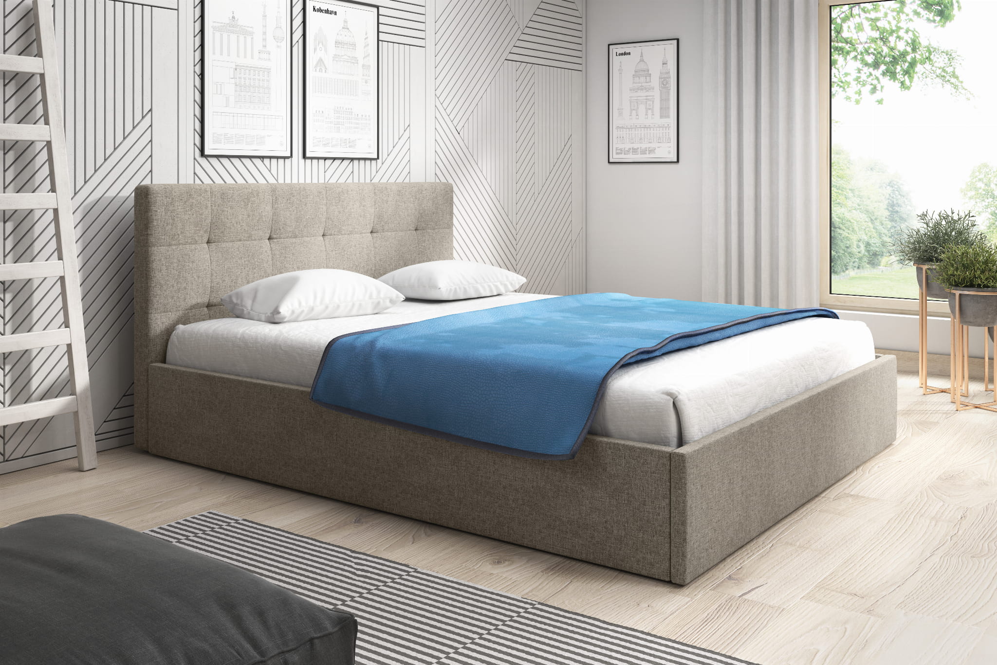 Łóżko tapicerowane LAUREN to proste minimalistyczne łóżko, które sprawdzi się niemal w każdej sypialni. Przeszyte zagłowie może służyć jako oparcie podczas codziennego relaksu. Łóżko posiada pojemnik na pościel wraz ze stelażem elastycznym otwieranym do góry, jest to niezwykle praktyczne rozwiązanie które pozwala zaoszczędzić sporo przestrzeni.