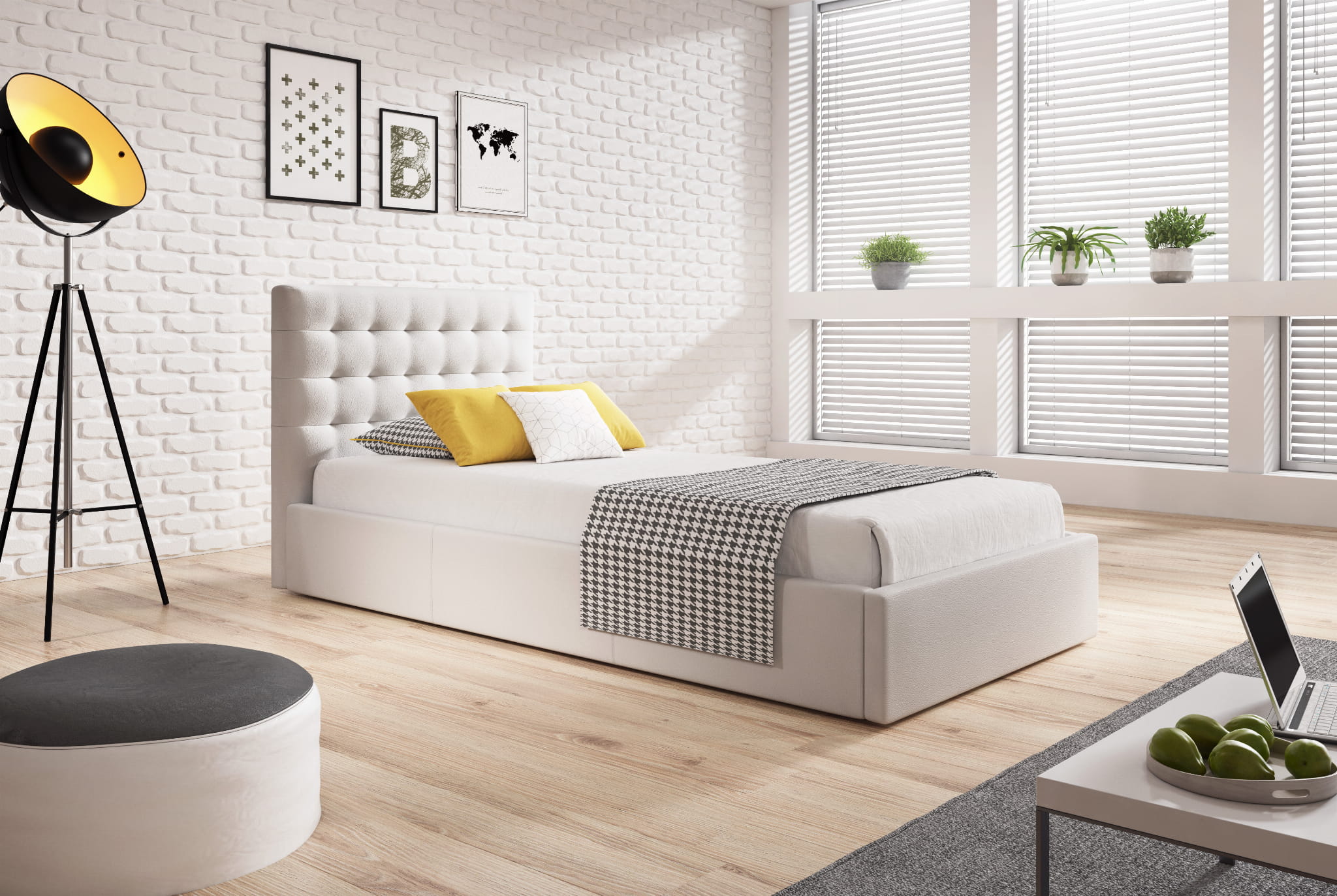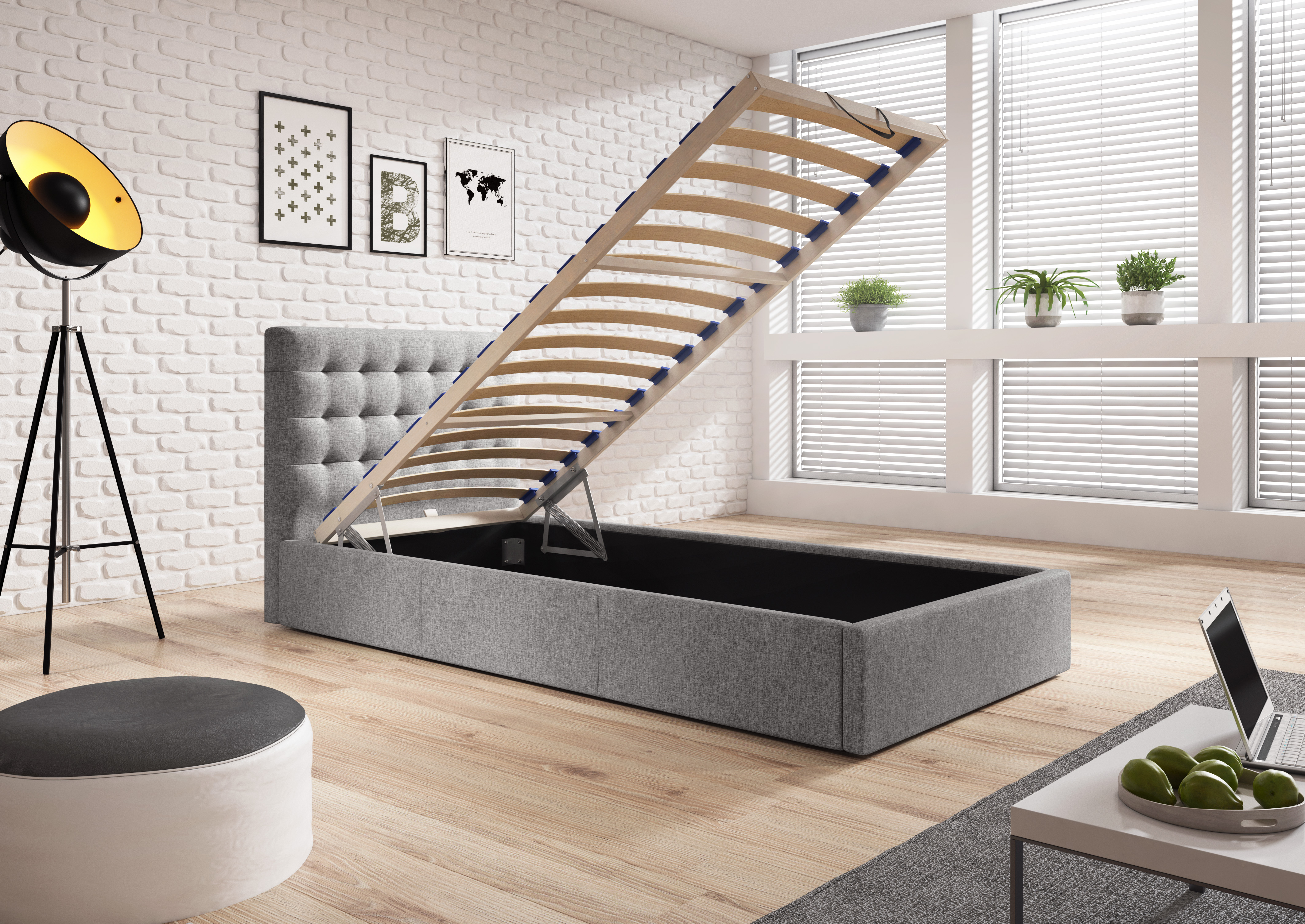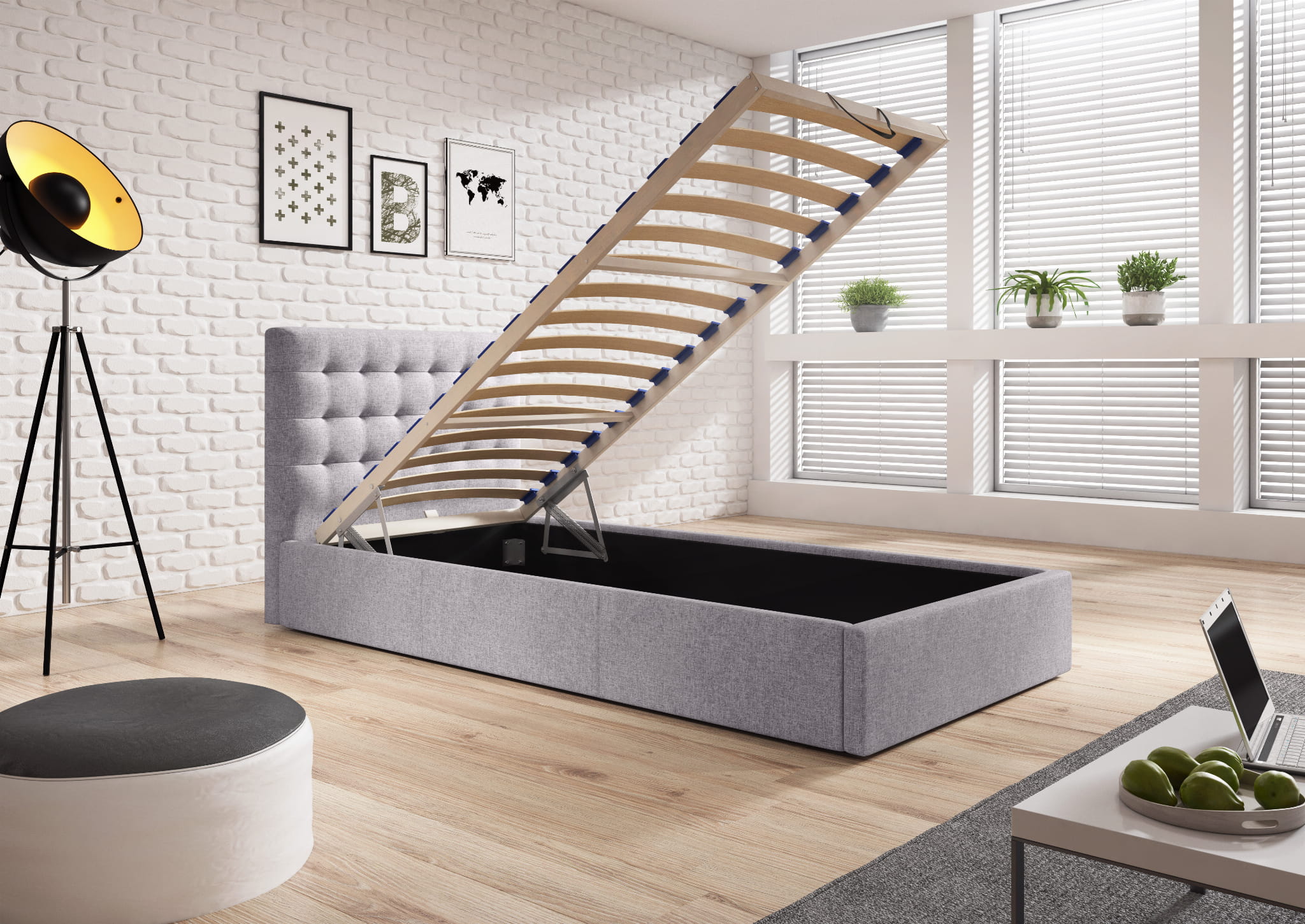 Łóżko VERONA to proste łoże tapicerowane o klasycznym wyglądzie. Idealnie pasuje do każdej aranżacji. Łóżko posiada pojemnik na pościel wraz ze stelażem elastycznym otwieranym do góry, jest to niezwykle praktyczne rozwiązanie które pozwala zaoszczędzić sporo przestrzeni.