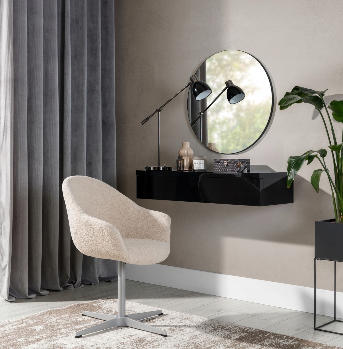 Lustro Navana , okrągłe o średnicy 70 cm, dostępne w dwóch kolorach: biały i czarny. Ich proste i eleganckie ramy doskonale komponują się z toaletką kolekcji Navana, tworząc harmonijną całość. Te stylowe lustra nie tylko ułatwią Twoje przygotowania, ale także optycznie powiększą przestrzeń, dodając pomieszczeniu nowoczesnego wyglądu. To idealne rozwiązanie do salonu, przedpokoju, garderoby oraz wielu innych pomieszczeń.