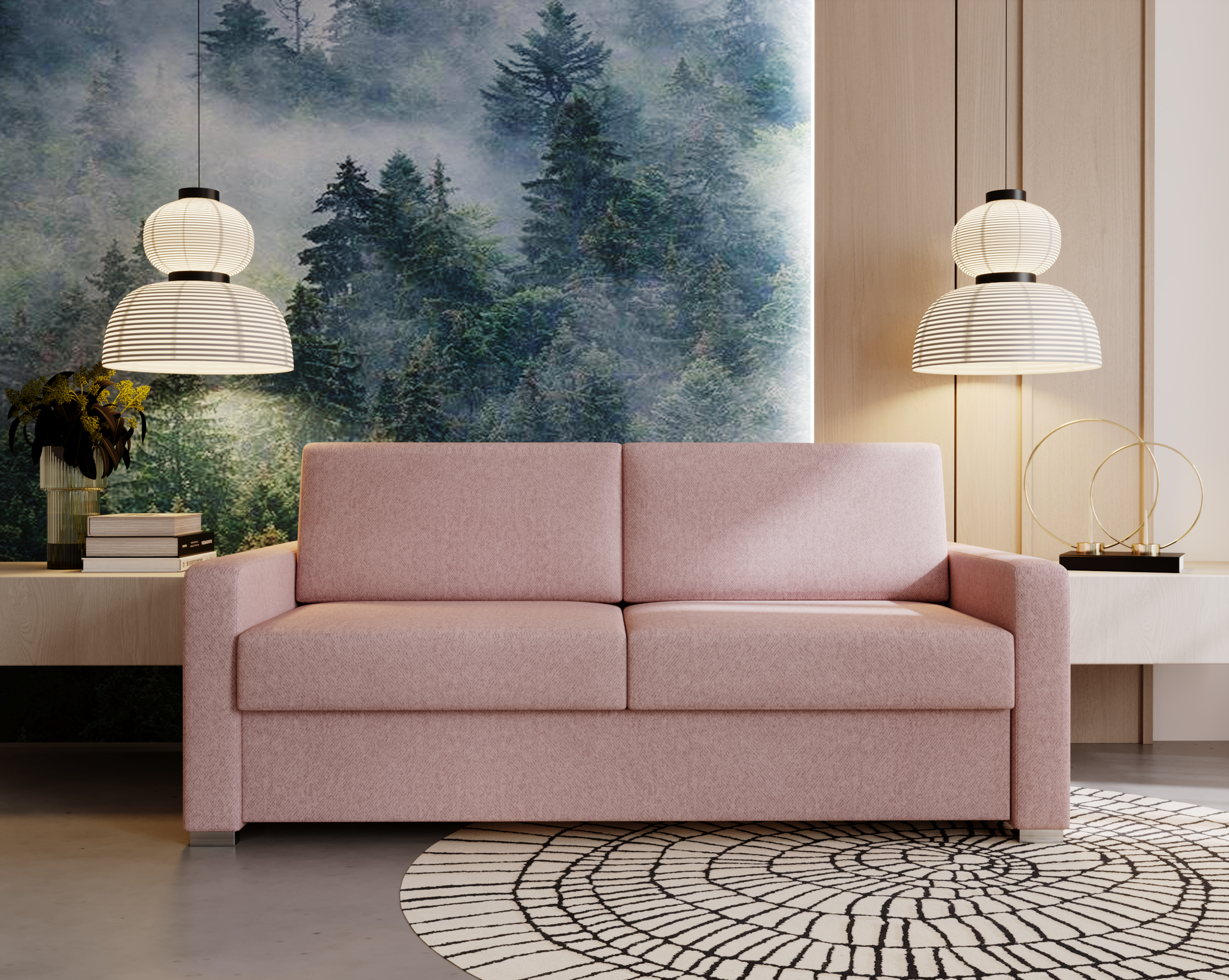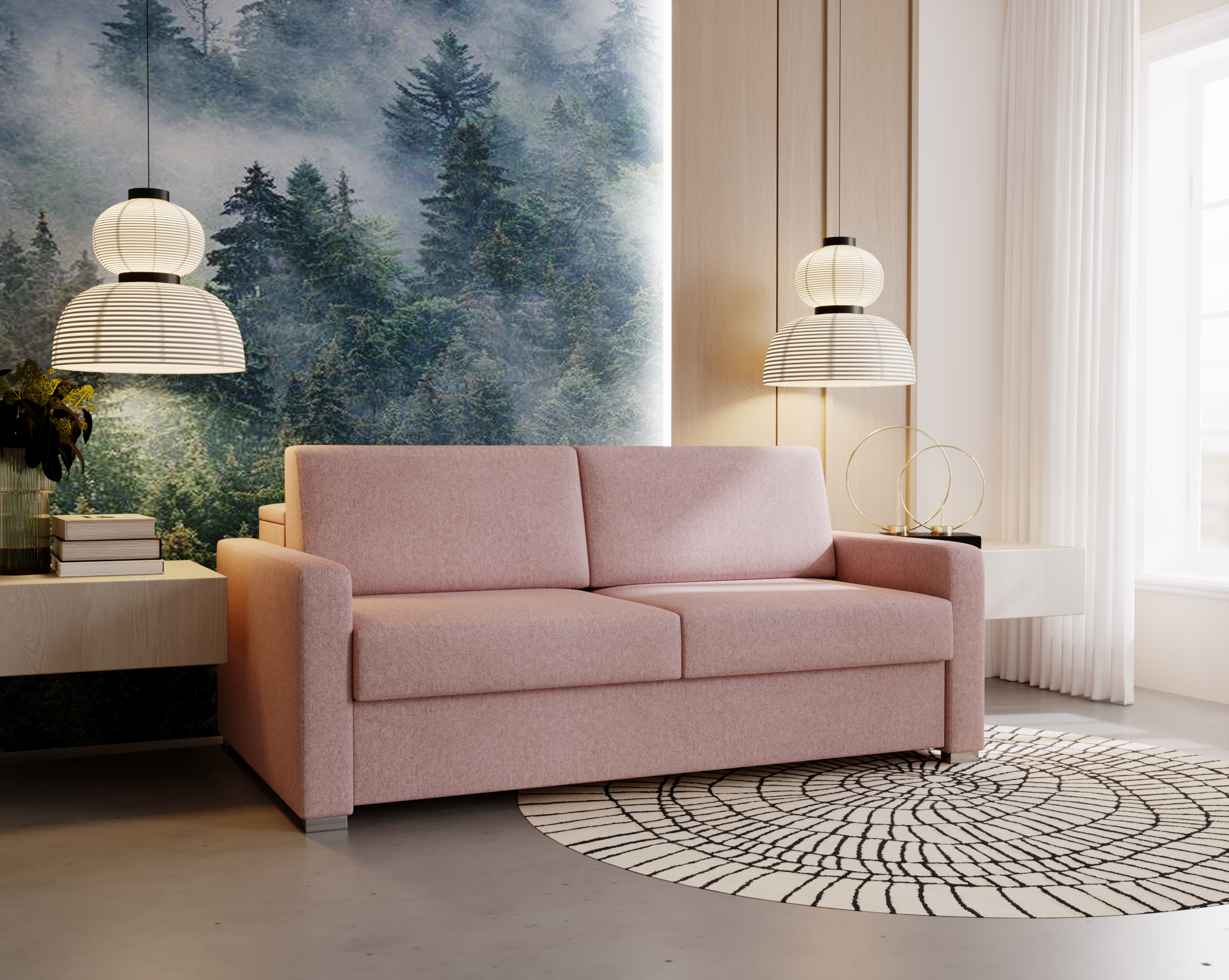 Sofa rozkładana z materacem Soul oparta jest na renomowanym systemie włoskim, co oznacza, że jej metalowy stelaż rozkłada się na jednym płynnym ruchu oparcia i siedziska. Bez trudu przekształcisz ją z wygodnej sofy w spanie. Sofa Soul prezentuje się stylowo i nowocześnie.