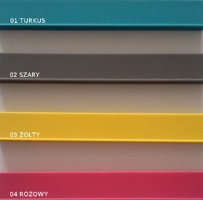 Turkus, szary, żółty, różowy