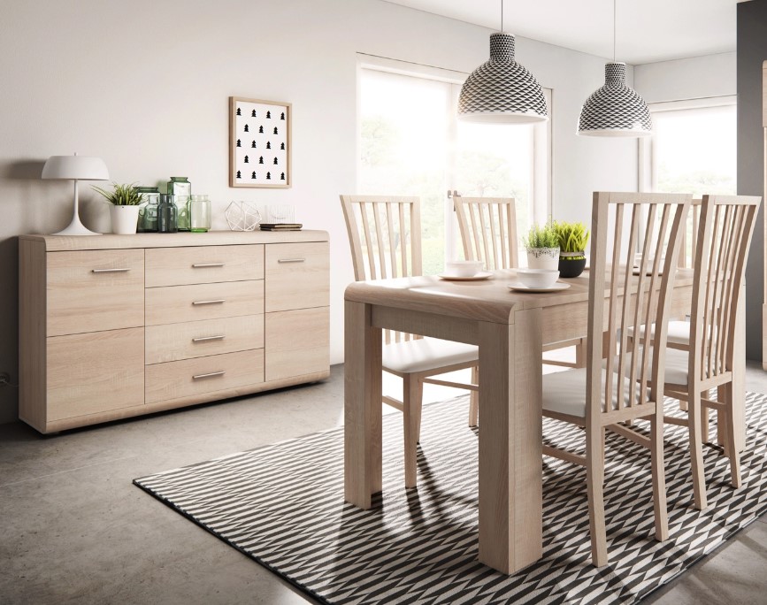 Stół z kolekcji Line możemy wykorzystać, jeśli nie mamy dużo miejsca w pomieszczeniu, ale jeśli będzie możliwość, możemy wykorzystać jego większą płaszczyznę, która uzyskamy po jego rozłożeniu. Brzegi i narożniki stołu są bardzo bezpieczne, ponieważ mają zaokrąglenia.