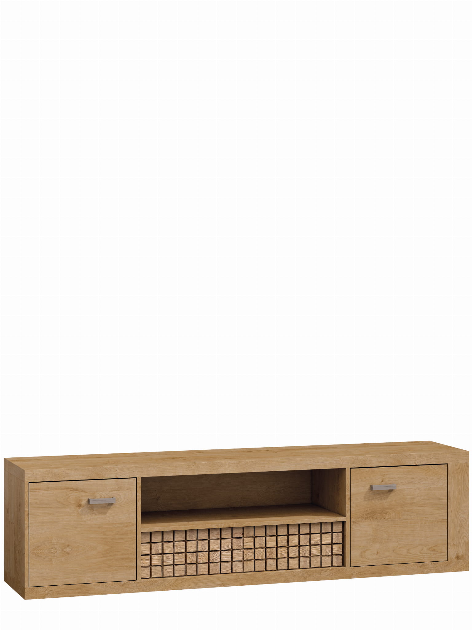 System NEVADA to meble idealnie pasujące do aranżacji salonu, sypialni czy też pokoju młodzieżowego. Wybarwienie w kolorze dąb ribbeck wkomponuje się w każde wnętrze, zarówno ciemne jak i jasne. Dodatkowym atutem systemu NEVADA jest drewniany front szuflady który można wybrać w opcji z falą lub kratką. Unikalny wygląd frontów szuflad podkreśla opcja z oświetleniem LED.