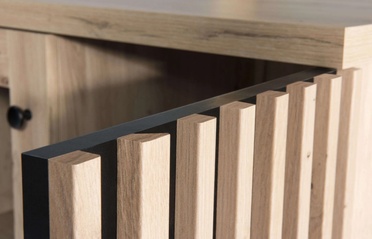 Kolekcja Camila stworzona dla tych, którzy lubią podążać za najnowszymi trendami, ale kierują się nowoczesnymi i funkcjonalnymi rozwiązaniami. Modne lamele w połączeniu z czarną, matową płytą oraz ciepłym kolorem drewna zdecydowanie wyróżniają system Camila.