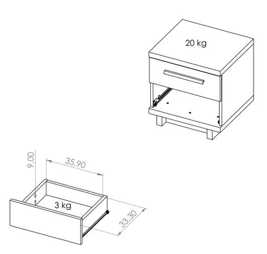 Stolik nocny Ines IN08 wyposażony został w 2 pojemne szuflady zapewniając dzięki temu możliwość przechowywania domowych akcesorii oraz książek czy gazet.