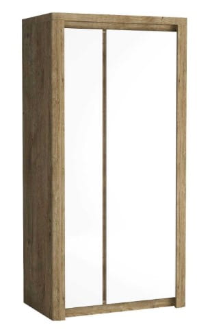 Nowoczesna szafa dwudrzwiowa w ciepłym, naturalnym kolorze ribbeck w połączeniu z bielą. Garderoba posiada sporo miejsca na ubrania do powieszenia, jak również półki na których poukładasz dokumenty, ozdoby oraz inne akcesoria.