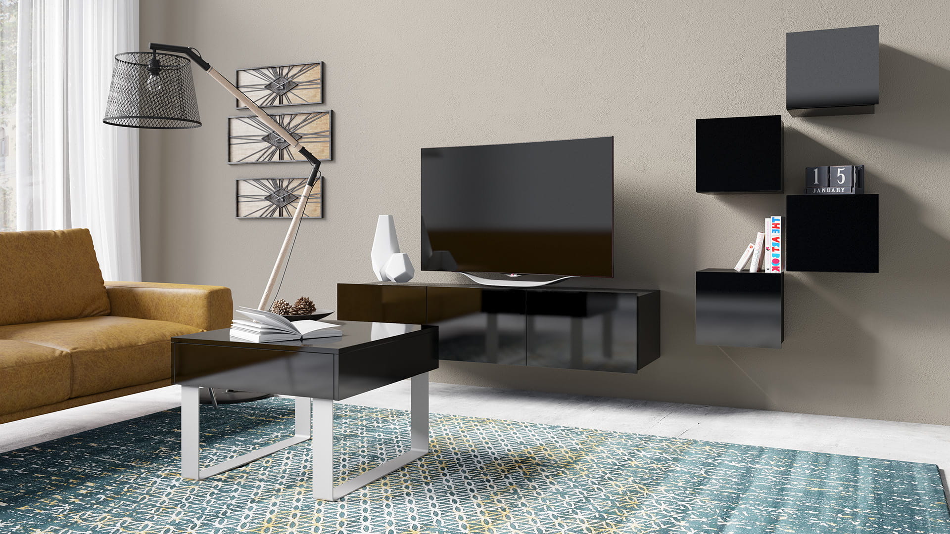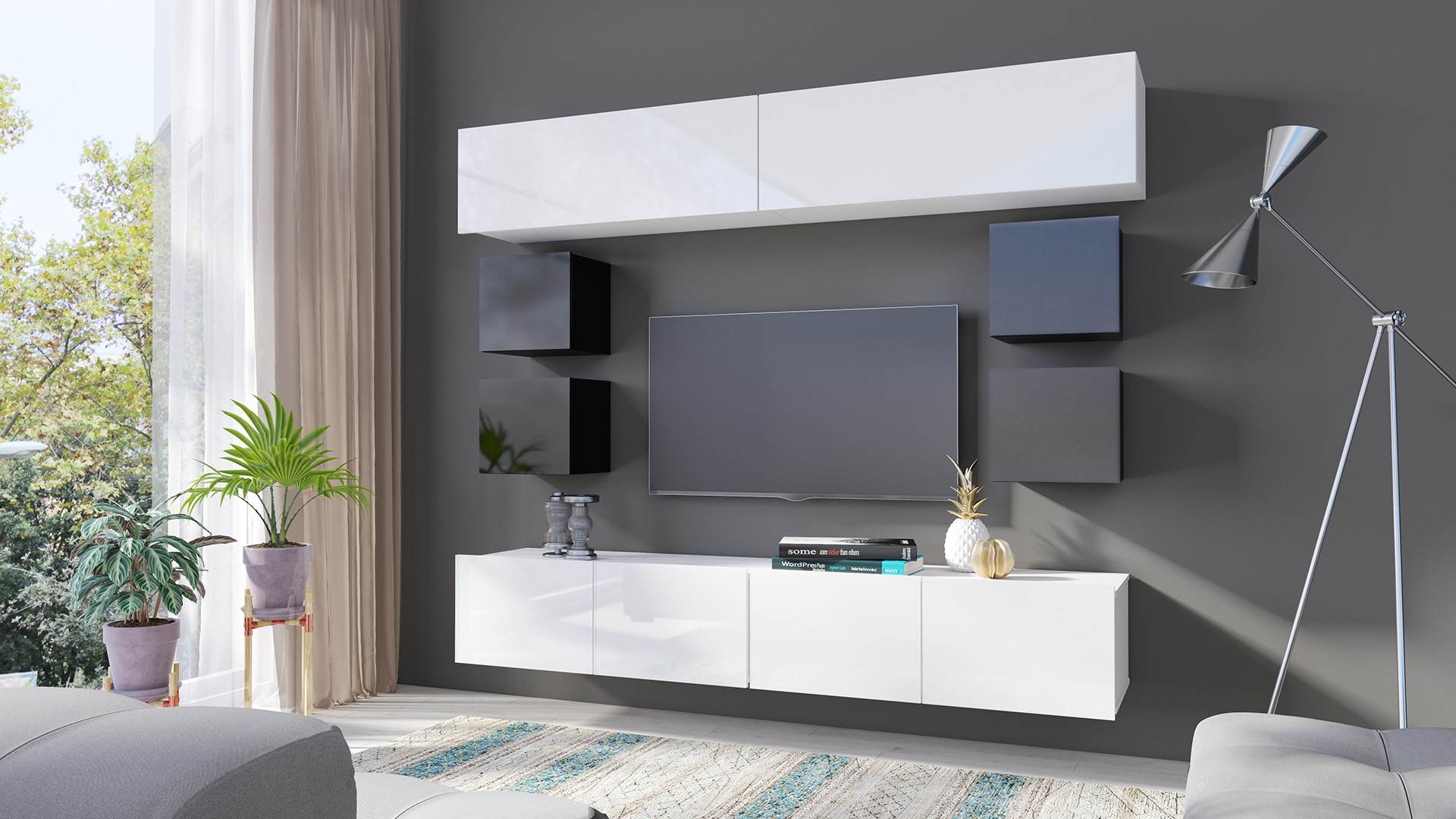 System meblowy Cindy zaprojektowany z myślą o salonie, sypialni, pokoju młodzieżowym lub gabinecie. Meble Cindy to inspirowane meble które łączą minimalizm, nowoczesność i elegancję w jednym. Mimo niewielkiej ilości elementów nasi klienci mogą tworzyć ciekawe aranżacje. Do wyboru trzy wersje kolorystyczne: biały połysk, czarny połysk i dąb złoty.