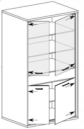 - w komodach, witrynach oraz szafach blaty górne z płyty laminowanej o grubości 32 mm
