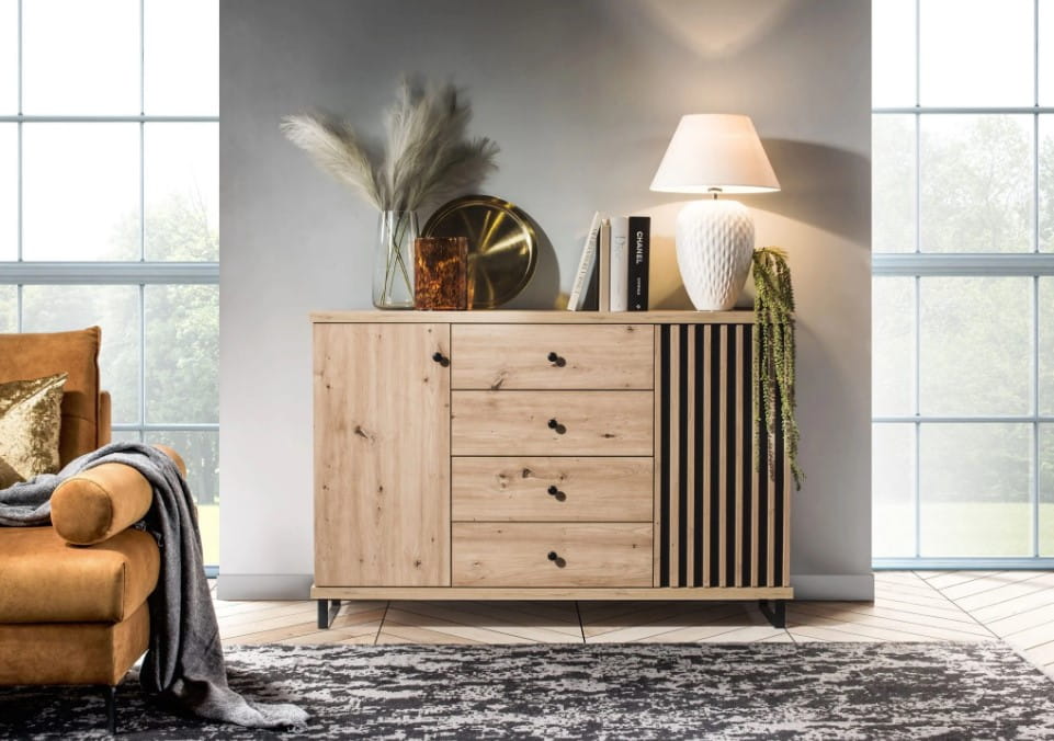 Kolekcja Camila stworzona dla tych, którzy lubią podążać za najnowszymi trendami, ale kierują się nowoczesnymi i funkcjonalnymi rozwiązaniami. Modne lamele w połączeniu z czarną, matową płytą oraz ciepłym kolorem drewna zdecydowanie wyróżniają system Camila.
