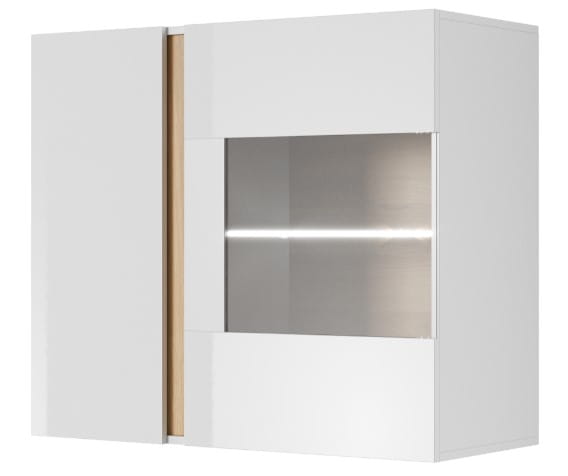 Witryna wisząca 96 Aron to stylowa witryna dedykowana wyjątkowej przestrzeni salonu. Wewnątrz za przeszklonymi frontem posiada jedną półkę szklaną, natomiast za pełnym frontem znajduje się jedna półka z płyty meblowej.
