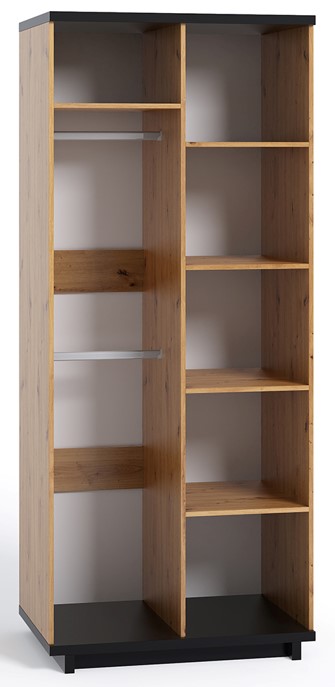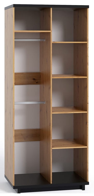 Szafa 2D Ines IN09 wyposażona została w pojemne półki oraz funkcjonalne drążki na wieszaki wewnątrz szafy. Dzięki takiemu rozwiązaniu w szafie bez problemu możesz przechowywać zarówno okrycia wierzchnia takie jak płaszcze czy kurtki, jak i drobną garderobę. Unikalna pojemność szafy sprawia, że z łatwością będziesz w stanie optymalnie zagospodarować przestrzeń w sypialni.