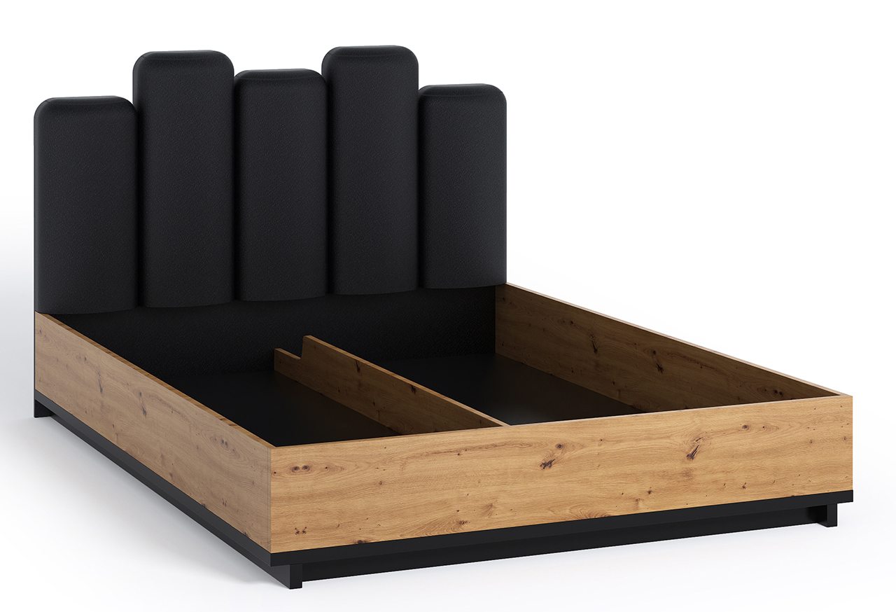 Łóżko z tapicerowanym zagłówkiem 160x200 Ines IN05 wyposażone zostało w pojemnik na pościel, stelaż oraz tapicerowany zagłówek. Ciepła kolorystyka naturalnego drewna oraz oryginalny design łóżka sprawi, że w Twojej sypialni zapanuje atmosfera relaksu i spokoju, dzięki czemu z łatwością wypoczniesz po ciężkim dniu.
