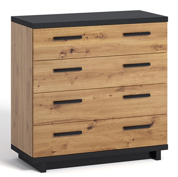 Komoda 4SZ Ines I02 wyposażona została w 4 praktyczne szuflady. Dzięki takiemu rozwiązaniu możesz w nim przechowywać podręczne domowe akcesoria. Zamykana szafka pozwoli też na ukrycie dokumentów lub drobnej garderoby. Pojemność komody sprawia, że będziesz w stanie optymalnie zagospodarować przestrzeń w pomieszczaniu.